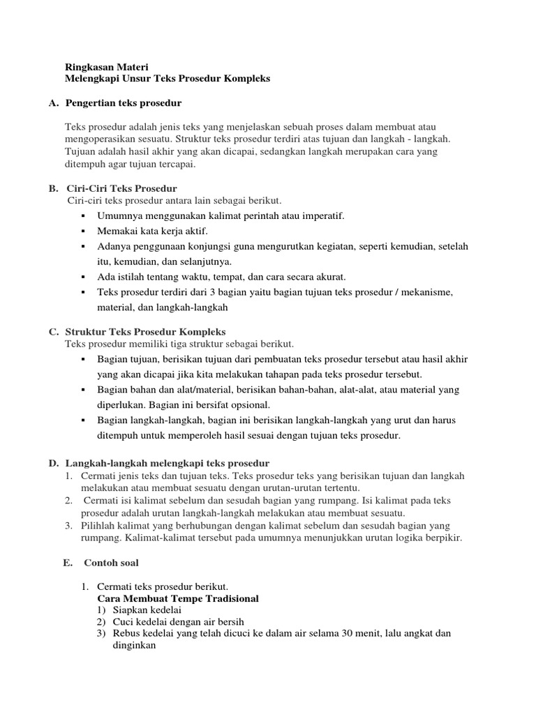 Contoh Soal Struktur Dan Kebahasaan Teks Prosedur Melengkapi Unsur Teks