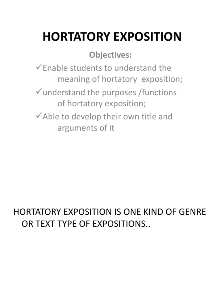 Untuk Kelas IPA yaitu Bahasa Indonesia Bahasa Inggris. Besides the living conditions of the. Hortatory exposition ialah teks yang isinya merupakan pendapat penulis yang menjelaskan sebuah isu secara komprehensif dengan tujuan memengaruhi atau membujuk pembaca atau pendengar bahwa sesuatu yang jadi fokus pembicaraan seharusnya atau tidak seharusnya terjadi sehingga pembaca terpengaruh untuk melakukan atau tidak melakukan sesuatu tersebut.