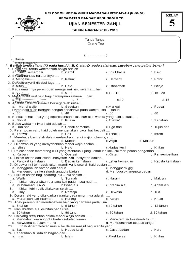 Contoh Soal Fiqih Kelas 3 Mi Semester 2 2016 2017